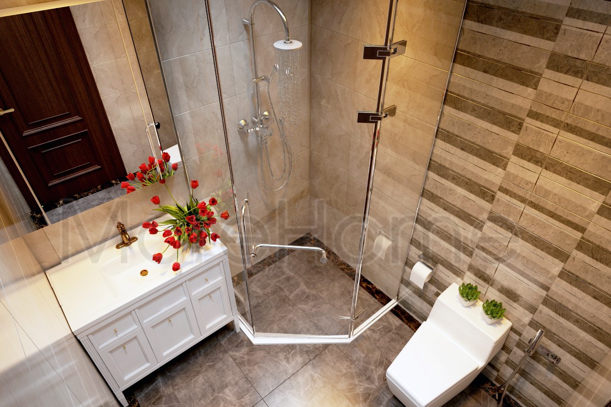 Mẫu phòng tắm kính 135 độ đẹp, đẳng cấp phù hợp với mọi không gian nhà ở.
