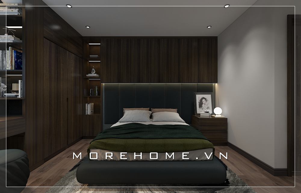 Giường ngủ biệt thự được làm từ chất liệu gỗ công nghiệp cùng gam màu nâu nhã nhặn tạo nên không gian nghỉ ngơi thư thái và yên bình