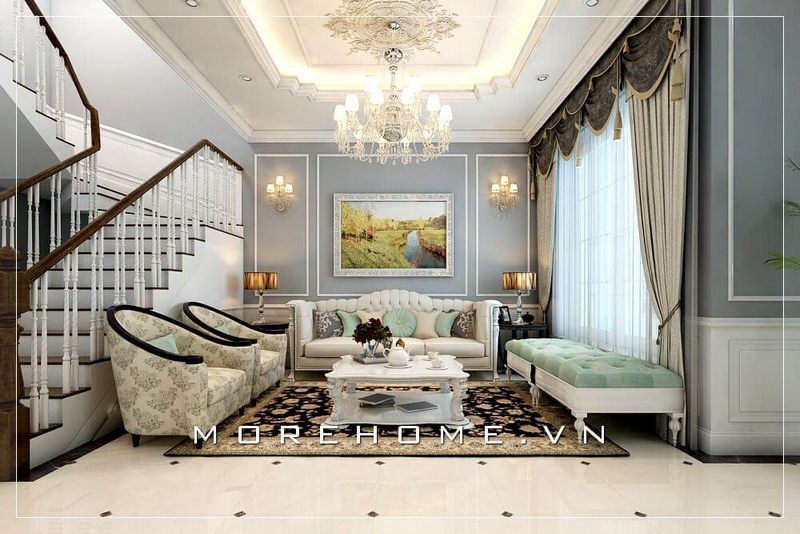 Sắp xếp nội thất phòng khách tân cổ điển đẹp, sang trọng cho không gian nhà phố, nhà biệt thự