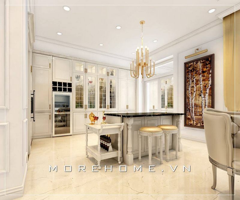 Thiết kế nội thất phòng bếp biệt thự tân cổ điển sang trọng và tiện nghi